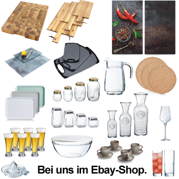 Ob Küchenhelfer, Porzellanwaren, Schneidebretter, Gläser,